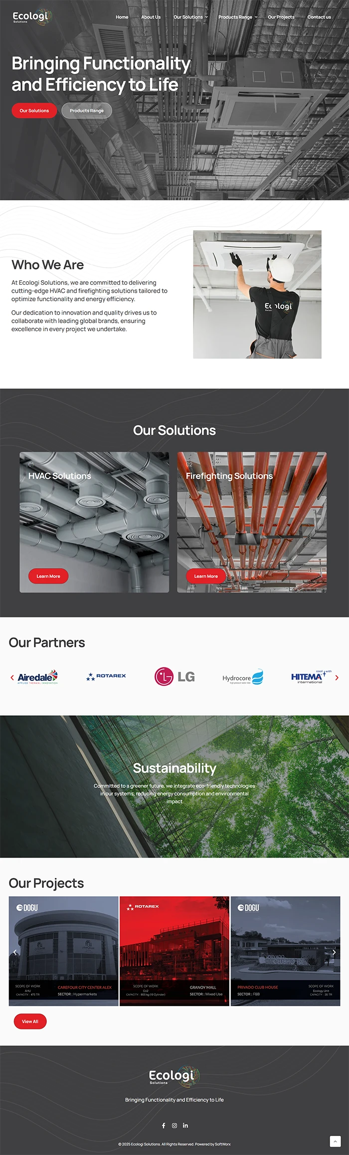 At Ecologi Solutions, we are a trusted trading and electromechanical solutions provider specializing in HVAC and firefighting systems and contracting solutions. As an official distributor for renowned global brands, we pride ourselves on offering cutting-edge technology, expert installation, and comprehensive support services tailored to serve our clients across industrial, banking, administrative, retail, and mega mall sectors, with a focus on projects in Egypt, the Middle East, and Africa.