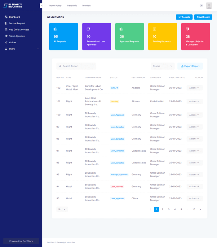 Welcome to El Sewedy Industries’ streamlined travel management system – your gateway to hassle-free bookings and seamless travel arrangements. Our user-friendly platform empowers you to effortlessly book flights, request accommodations, and secure visas, ensuring a smooth and efficient travel experience. Discover the convenience of our system as we prioritize your journey, making business travel a breeze for El Sewedy Industries.