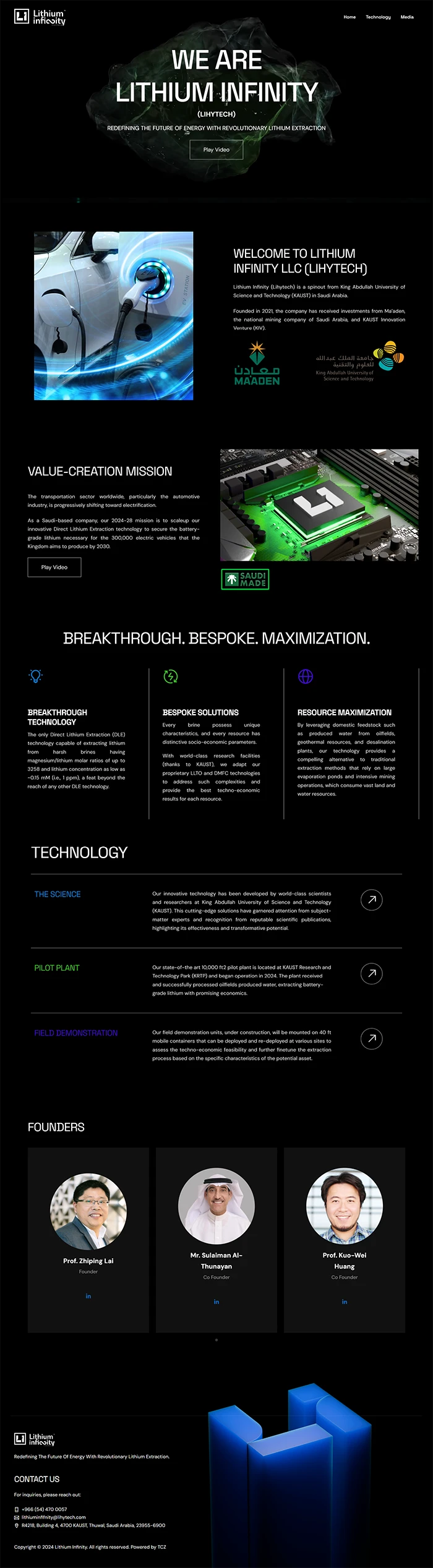 Founded in October 2021, Lithium Infinity LLC (Lithium Infinity) was established to commercialize our membrane-based direct lithium extraction (DLE) technology from unconventional sources, building on years of extensive research by a group of KAUST professors and scientists.