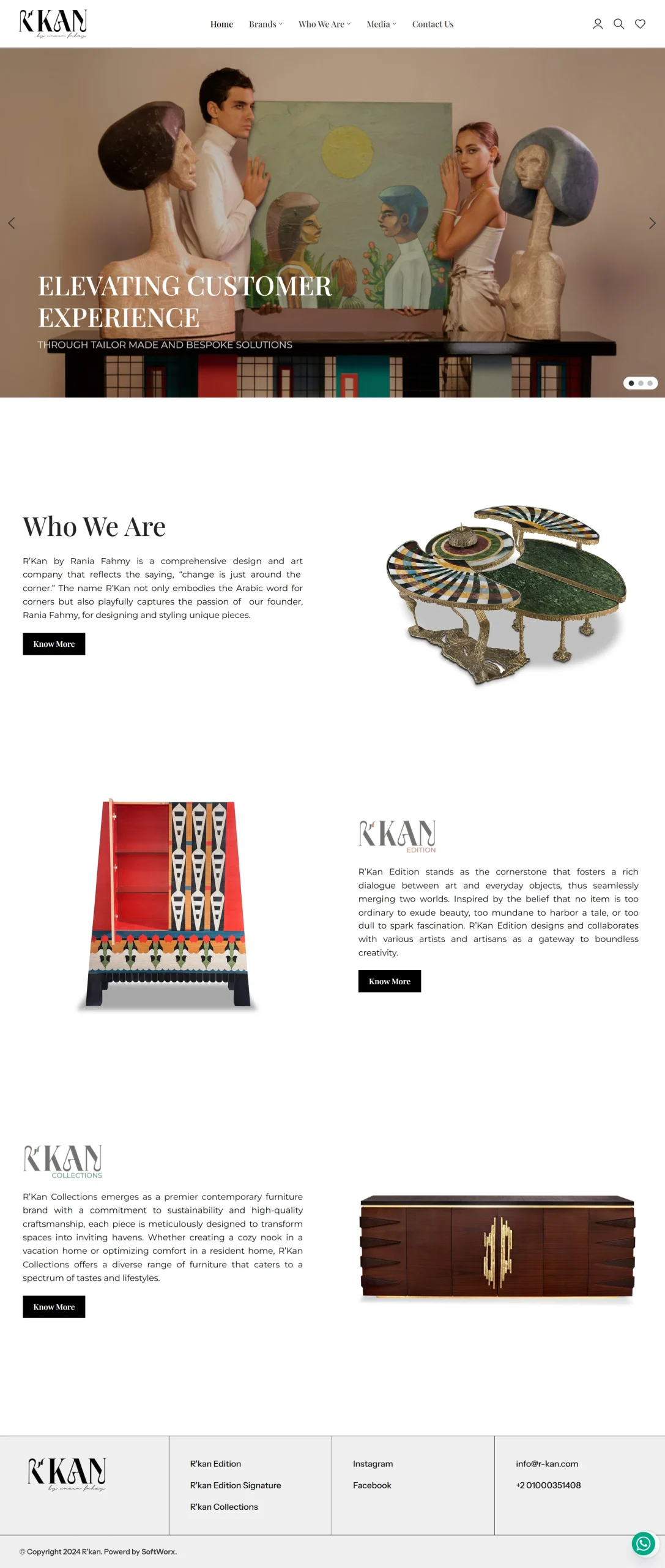 R’Kan by Rania Fahmy is a comprehensive design and art company that reflects the saying, “change is just around the corner.” The name R’Kan not only embodies the Arabic word for corners but also playfully captures the passion of our founder, Rania Fahmy, for designing and styling unique pieces. R’Kan by Rania Fahmy is a holistic design experience that encompasses functional art, product design, interior design, and the provision of art concepts and installations, drawn from our own collection or curated selection of works by other renowned designers and artists. R’Kan by Rania Fahmy envelopes two distinct sub-brands: R’Kan Edition, and R’Kan Collections.